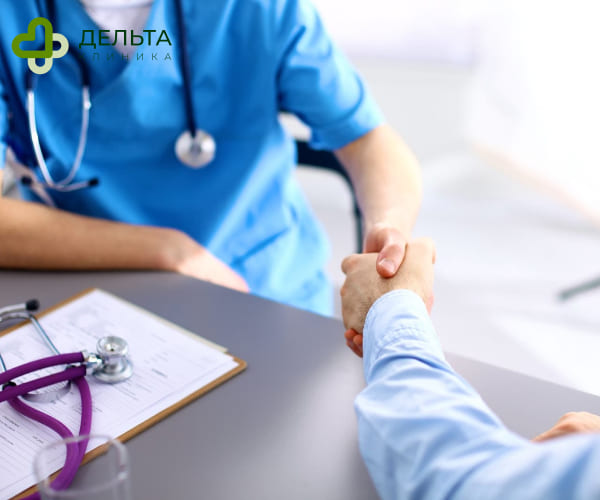 Врач пожимает руку пациенту